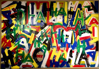 | חחחח יצירת אמנות בסגנון אוריינטלי מופשט, מילים וצבע מתמזגים יחד. צבעוניות דקורטיבית וססגונית |
